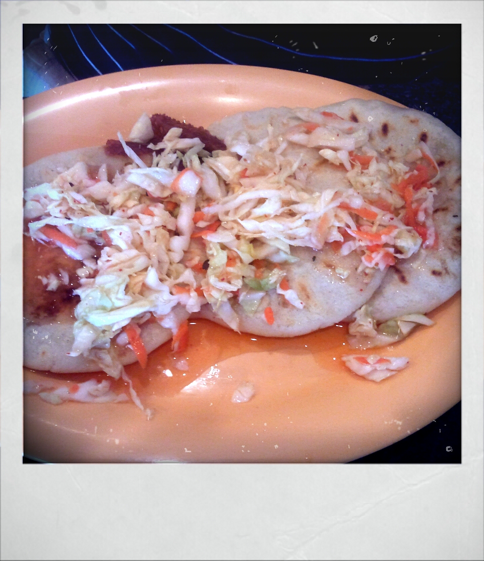 shot_1426282914479 I had a disastrously bad relationship in my early 20’s and as hellish as it was at least two good things came out of it; my hard earned resolve to demand better for myself and a newfound love for pupusas.  Pupusas hail from El Salvador and were originally created by the Pipil tribe many centuries ago.  It wasn’t until the 1980’s that they arrived here in el norte, carried in the hearts and stomachs of thousands of Salvadorans fleeing their tumultuous & civil war torn country.  Since then, pupusarias have popped up all over the U.S. and are especially prevalent in LA, where this little gem resides.