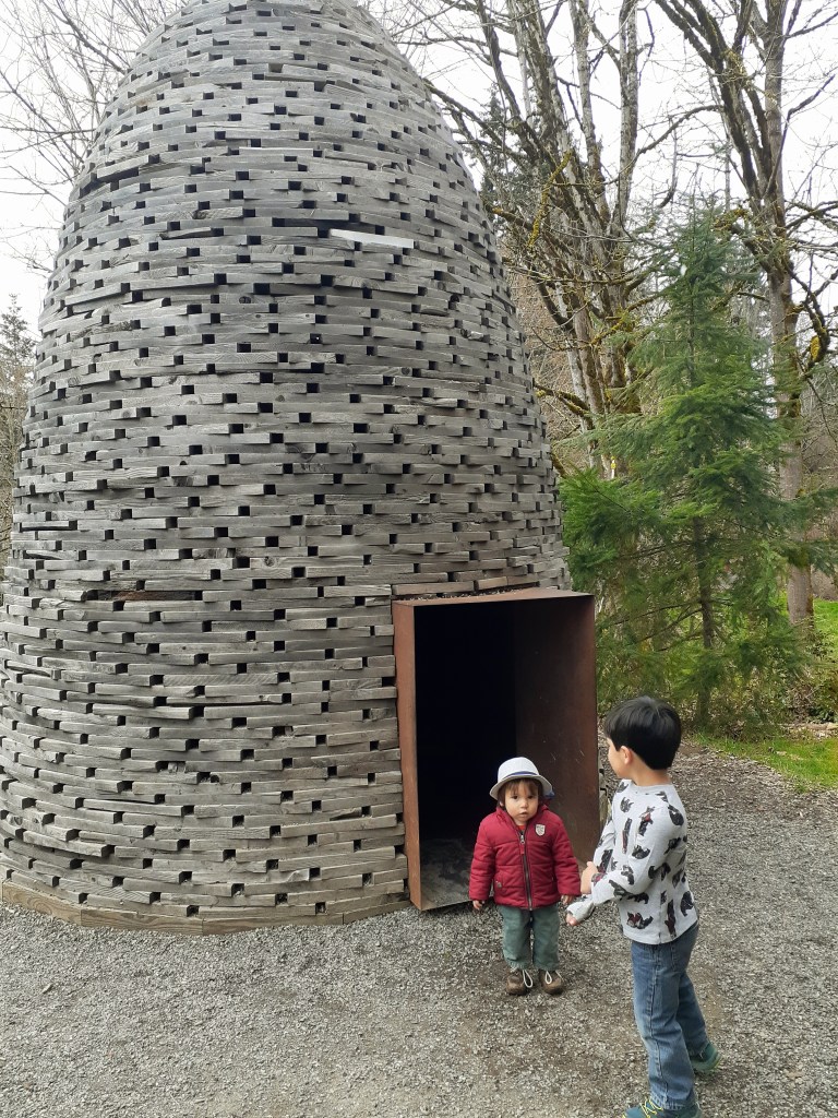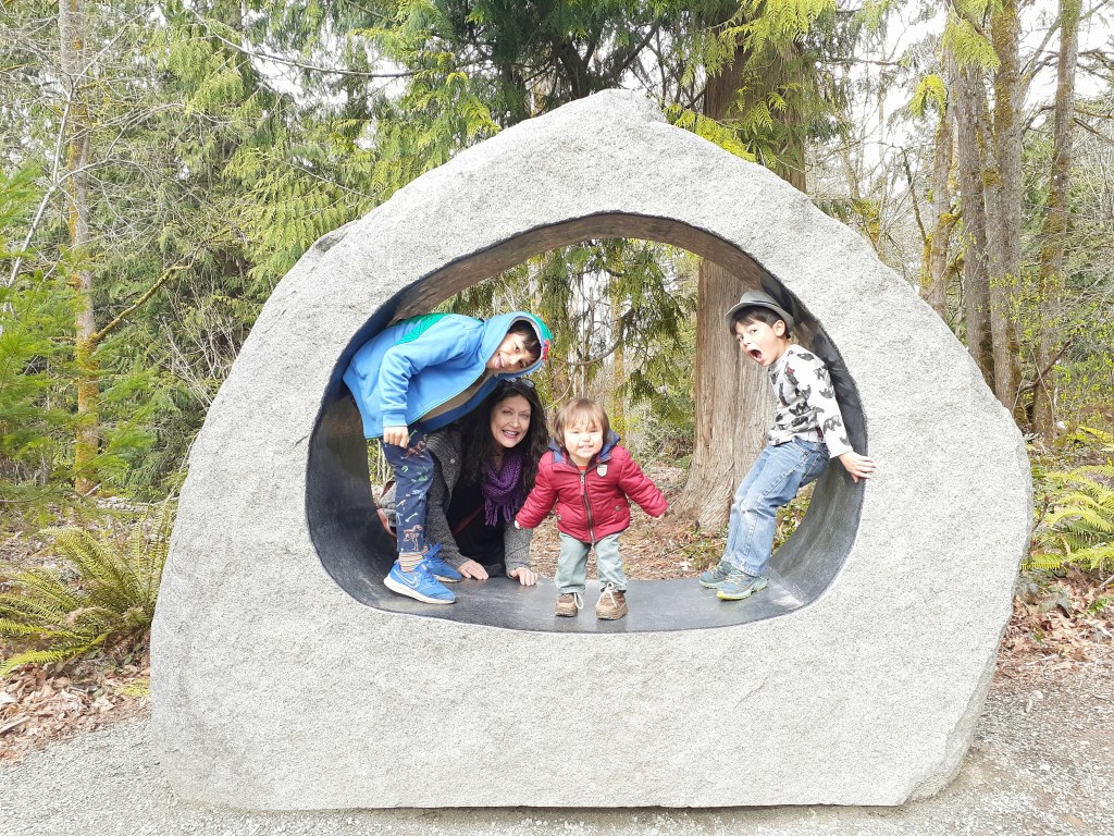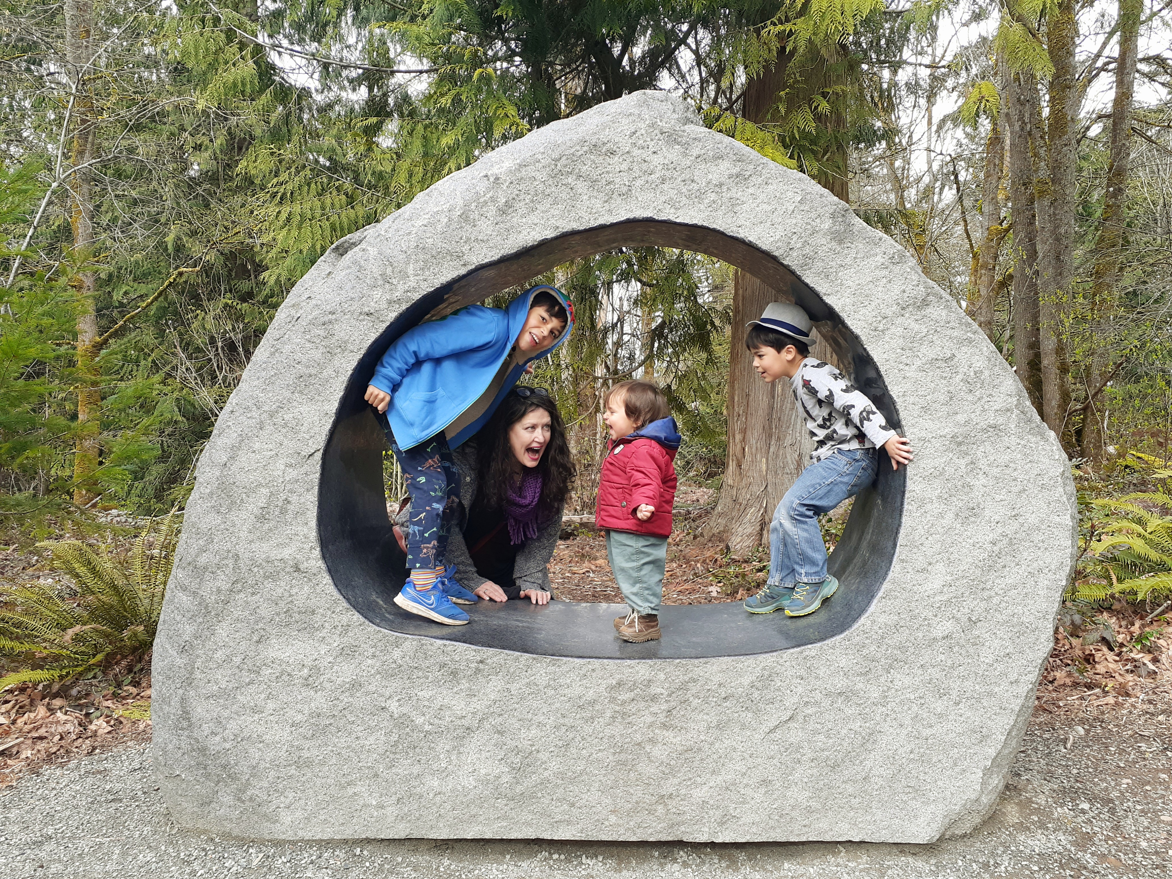 We headed to the Bellevue Botanical Garden, a 53 acre oasis in the middle of a busy residential neighborhood. The grounds are lovingly maintained and somehow manage to feel like some puttering grandma’s home instead of the don’t touch, don’t walk, speak only in whispers aura that surrounds so many other botanical gardens. The garden is meant to be enjoyed & explored and carefully tramped through; an element that I appreciate about it, especially with my three rambunctious children.