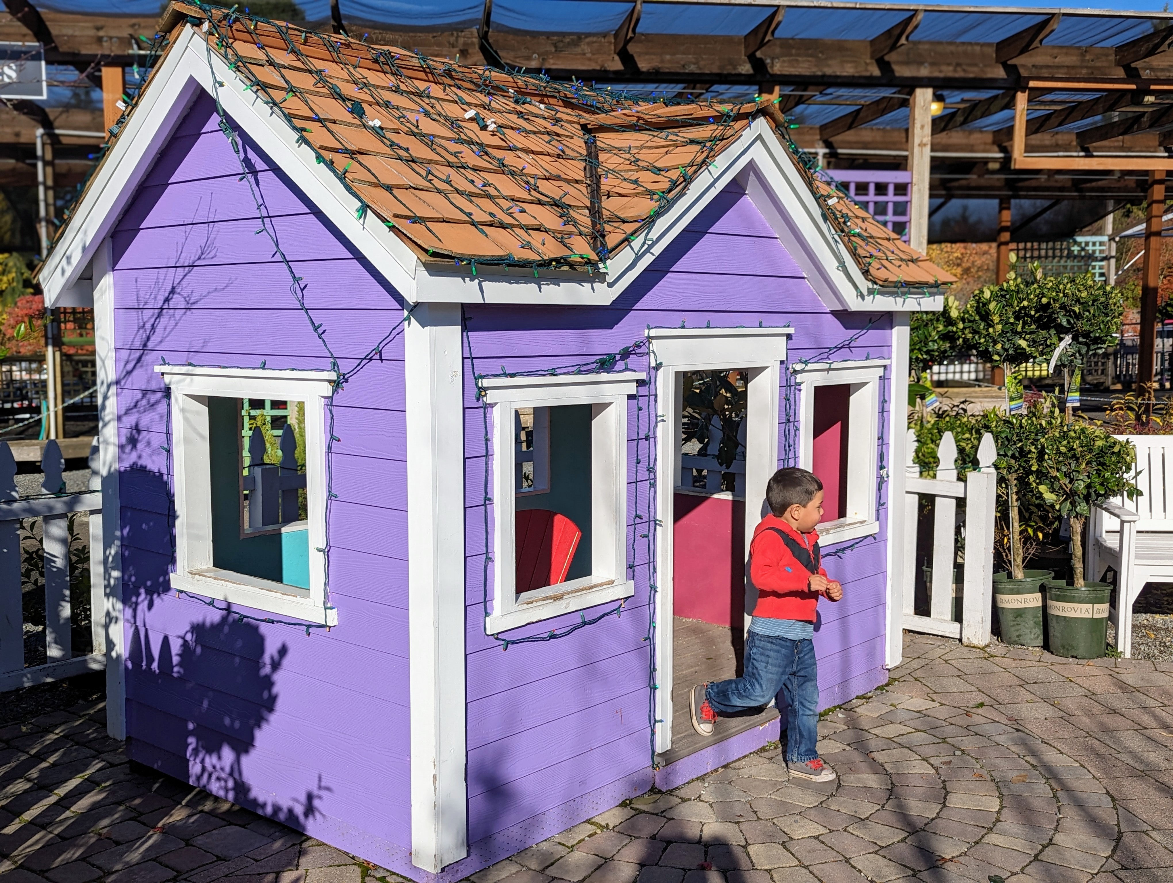 For years I had heard about the fabled Swansons Nursery, a lush expanse smack in the middle of the city consisting of a gardening store, a gift shop, a full scale cafe, a kiddie playhouse and even a themed holiday model train setup. So Rio and I ventured down to the city on a crisp & sunny November day to finally see what Swansons was all about and we were pleasantly surprised at how much there is to do & see amidst the pallets of plants and trees.