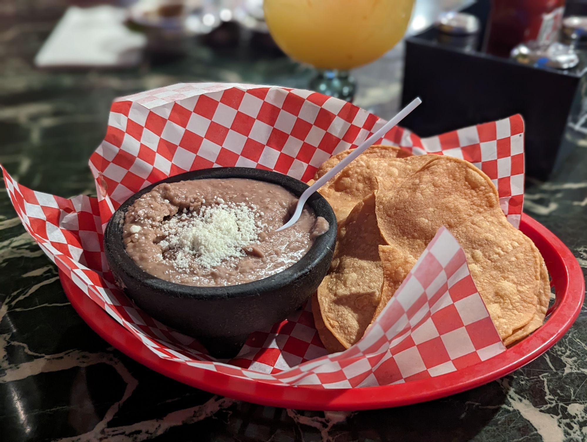 After we had strolled up to the counter to place our order, we found a table tucked into a corner in hopes of containing our wild heathens until the food arrived. While I sipped on my tasty margarita, which Rio valiantly tried to steal from me every time my eyes were averted; I swear that kid was a boozehound in his past life, we feasted on chips and beans. Soon our table was laden down with all sorts of Mexican goodness, a chicken burrito, steak street tacos and of course, that infamous shrimp quesadilla.