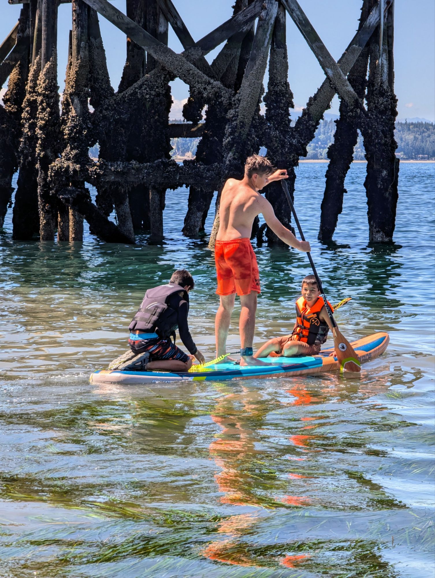 The beach area itself recently underwent a huge renovation, and there’s plenty of parking to be had along with picnic shelters and numerous picnic tables. It was a great place to launch my new paddle board, and though Port Susan is salt water, since it’s relatively shallow, it is usually warmer than its Pacific Ocean counterpart.