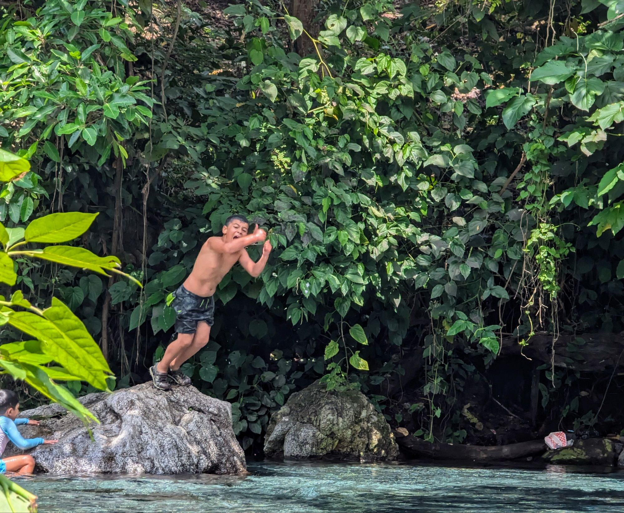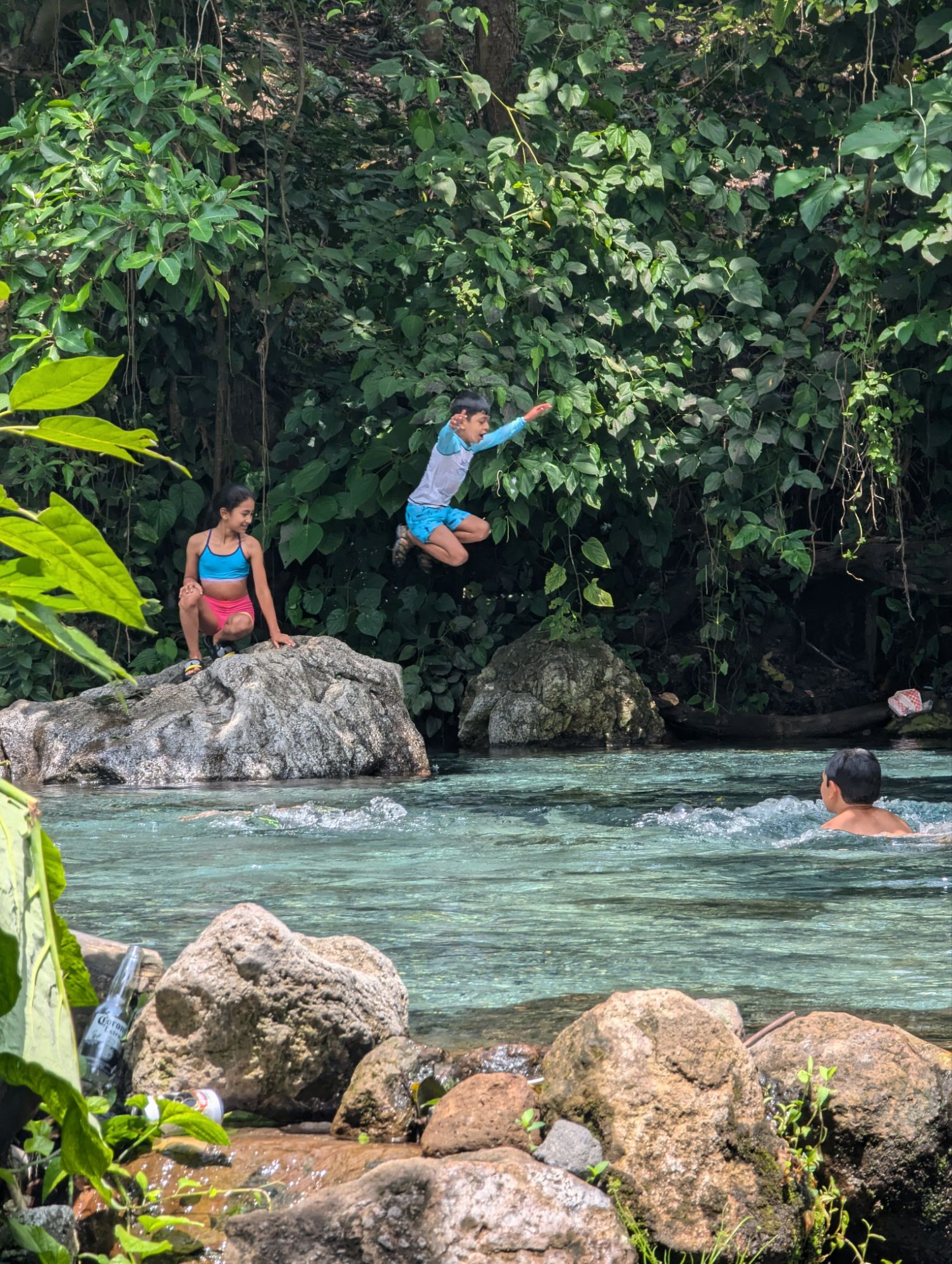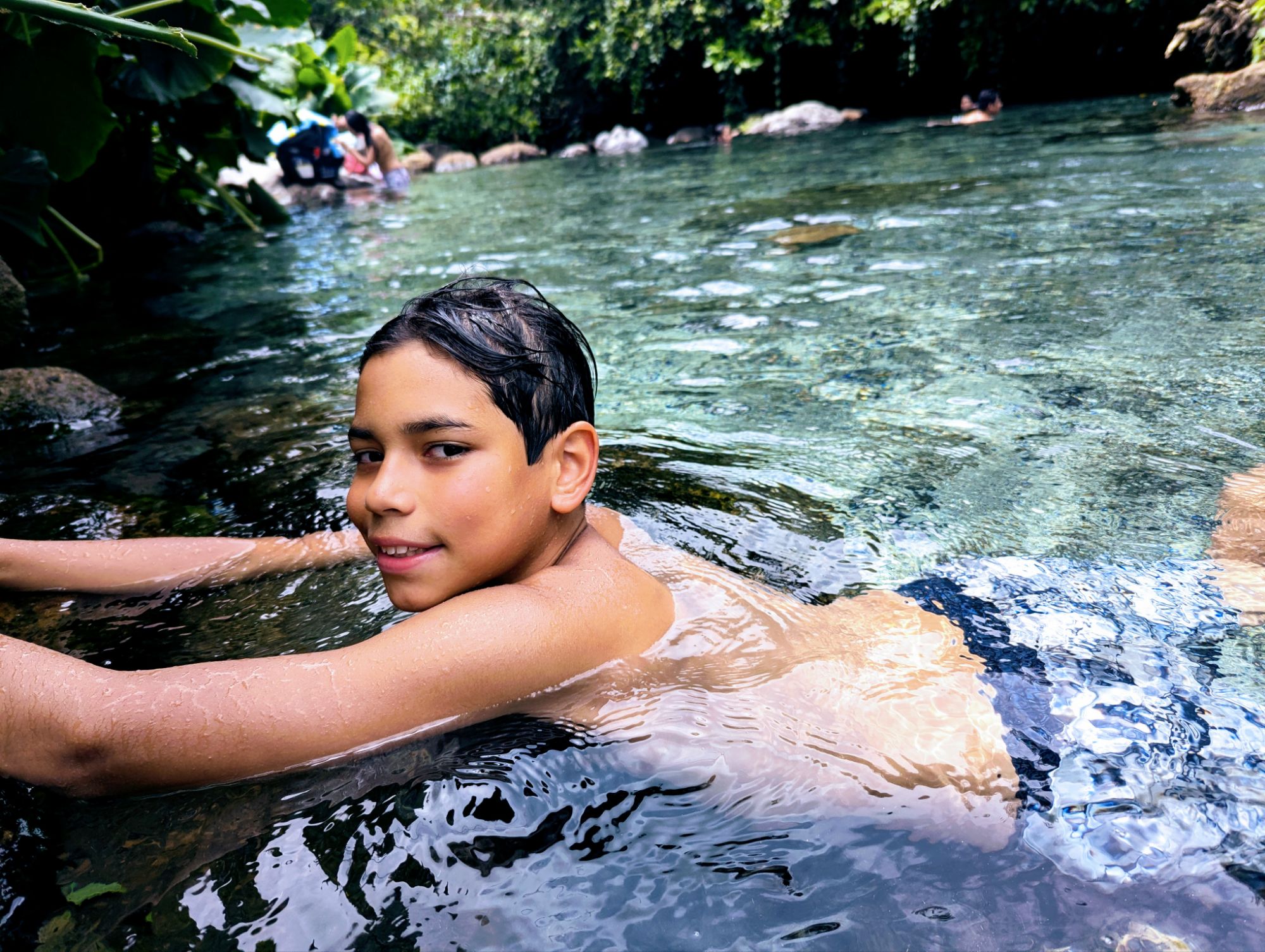 When we plunged into the water, there were a few other families already there, and my blond hair certainly attracted the attention of a few young kids who shyly swam over to check us out. It was only a matter of minutes though, before all the kids were taking turns jumping off of the rocks and playing a game of tag. It didn’t matter that they hadn’t known each other at all five minutes before or that my boy’s grasp of Spanish was clearly lacking, there was warm water, and fun to be had, and that’s all kids need to have a great time.