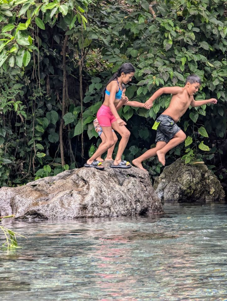 After the afternoon rain storm rolled in, we all scrambled out, as the water rose around us and though it was hard to leave the comfort of the warm water for a chilly run up the hill in the rain, it was time for lunch. Everything was delicious, all the more so because I didn’t have to prepare any of it hahaha. There was a young boy scampering from group to group selling roasted corn out of a basket, and though he most likely should have been in school, I hope us being there and buying up all of his wares, helped him at least get the afternoon off to do what he pleased. I saw London watching him, only a year older than he was, and could sense the empathy in his eyes. He might not always get what he wants but at that moment, I could tell he was grateful for what he did have, and that’s one of the beautiful things about traveling, it often puts things into perspective.